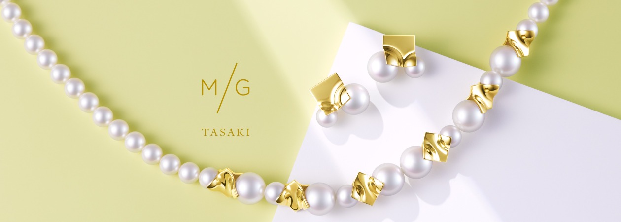 「M/G TASAKI(エムジー タサキ)」は、ロンドンを拠点とするジュエリーデザイナー、メラニー・ジョージャコプロスをヘッドデザイナーに迎え、アーティスティックな視点からパールの本質に新たな解釈を加えた、モダンで斬新なジュエリーラインです。